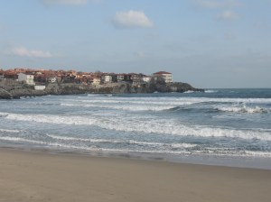 We were moving along well through the Turkish and Bulgarian scenery on our fancy bus. Our bus even had a ‘bus attendant,’ which was like a flight attendant, as he walked around giving us water and snacks. We even had televisions on the back of our seats. However, at about 2:30am a man who spoke perfect English and had helped us with the bus earlier came up to ask and asked us did we not want to get off at Bourgas. Bourgas was in fact the big city we wanted to get off at in order to reach our smaller destination, Sozopol. When we said yes, he said that the bus had passed Bourgas already. This shocked us because the end destination on our ticket said Bourgas, but apparently the end destination of the bus was Varna, a city much farther north. So the bus attendant and the kind English speaker had us get off the bus and called us a taxi to take us back to Bourgas. The taxi driver offered to take us all the way to Sozopol, but we decided a small town would be much worse to be in during the middle of the night and we decided to go wait at the bus and train station. We got to the bus/train station and discover two things. The first was that the price quoted by the taxi driver was actually per person and that the bus/train station was not open but closed. We were at a loss for what to do. After talking it through, Caitlin and I decided we would go to a hotel and sleep for awhile, so we would know we would be safe. So we checked in at a charming looking hotel, heavily decorated for Christmas, and felt much better. That is, we did until we realized that anytime we turned the lights off in the room the radiator also came off. So we had to sleep with the lights on, but the radiator also went off suddenly and we were left to cover with three blankets each, which still did nothing to cut into the freezing Bulgarian night.