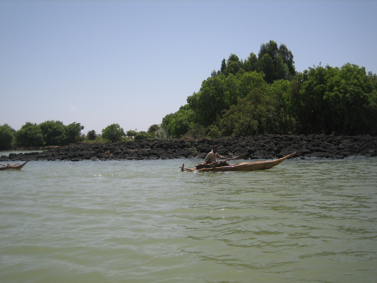 Tristen and I took a minibus from Gondar to our next stop, Bahir Dar. Bahir Dar is located on beautiful Lake Tana, one of the Rift Valley Lakes. It was not a particularly bumpy or winding road ride, but for some reason several people in this close-spaced mini bus got sick and started vomiting into small plastic bags. We could not have gotten out of the mini bus any sooner. But Bahir Dar was worth the ride. The lake is beautiful and we took a trip out onto the lake to visit one of the old monasteries upon one of the numerous islands in the lake. Some of the monasteries are only open to men, however. From the lake we also saw the source of the Nile River. We also took a trip out to see the Blue Nile Falls. The falls are about an hour and a half from the main part of the city. We decided to take a tuk-tuk to save money. It proved to be a VERY long journey by tuk-tuk, as we did not know that the road was not paved for the entire way. So we were in a small tuk-tuk feeling every bump of each stone on the gravel road. On the way back our tuk-tuk actually broke down. First the top of the tuk-tuk began to fall in on Tristen and myself. Then, the tuk-tuk battery died and we had to get out and help the driver push it until it ran again. It was an unforgettable journey.