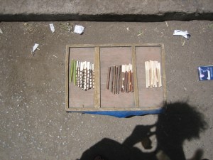 One interesting story from Gondar involves these two young men Tristen and I encountered. When we got to Gondar, one young, Rastafarian man offered to show us the location of a reasonably priced pension. We though he was being nice, since we had encountered nice people who helped us in Addis. Then he and a friend of his showed us a restaurant to eat at, where we watched the coffee ceremony and had a wonderful meal. (Tristen and I ate so much injera with the sauces, but not as much meat because they were fasting for Easter). However, then they started planning our entire time in Gondar out and we felt they were smothering us, so when we parted ways for us to use an Internet café, we decided not to meet them up later. We thought we would never see them again, but the Rastafarian young man found us later in the day and was so upset that we had ditched our “tour guide” and insisted that we pay him for his time earlier in the day. We told him that we would certainly not pay him and we had not entered into an agreement with him to be our tour guide. It was our first encounter with an Ethiopian hustler. Later that night his friend showed up claiming to the hotel owner to be our tour guide who had hired a bus to take us to Bahir Dar. We had to have the hotel owner get rid of him. The hustlers all over the country proved to be very persistent.