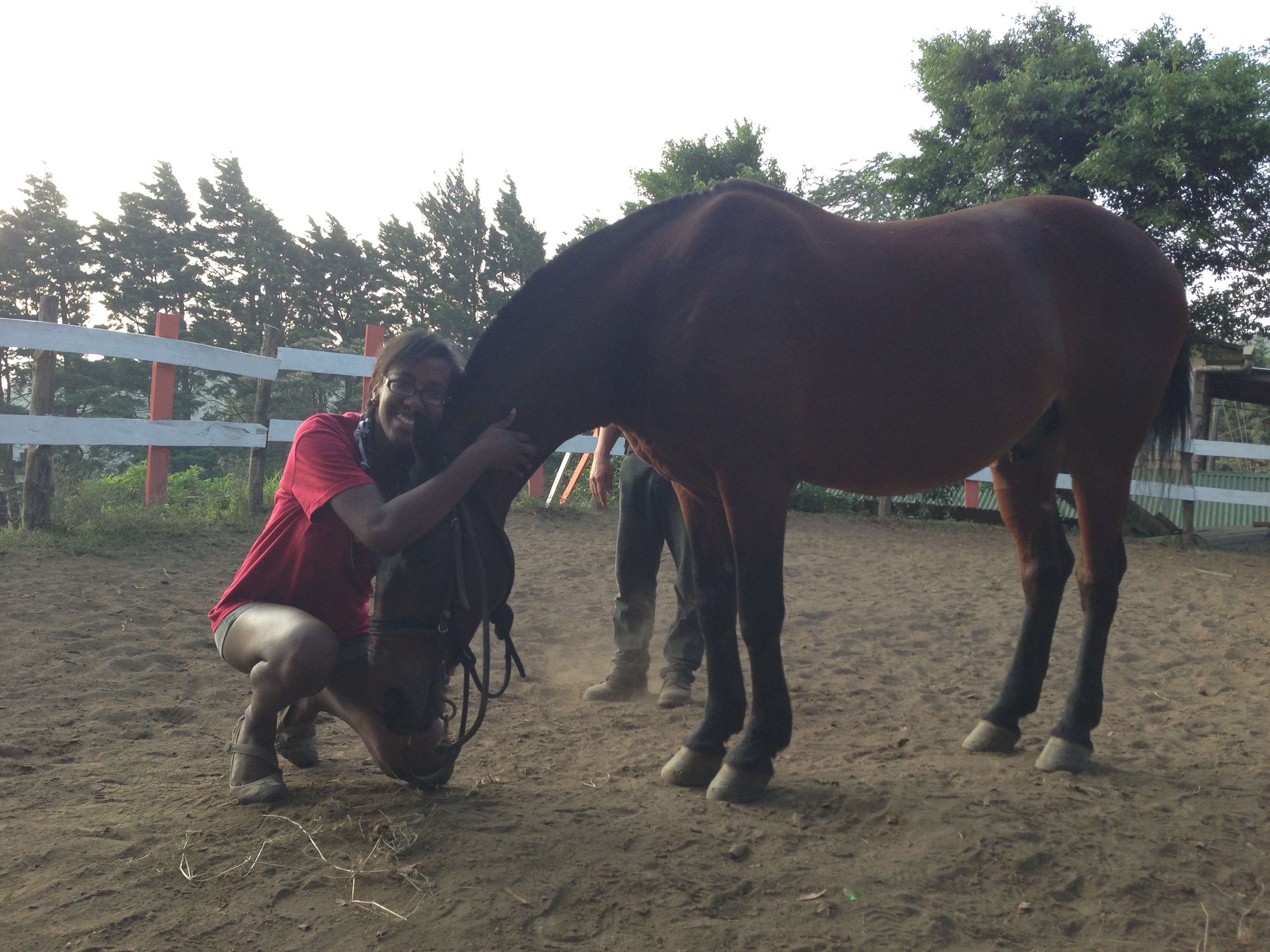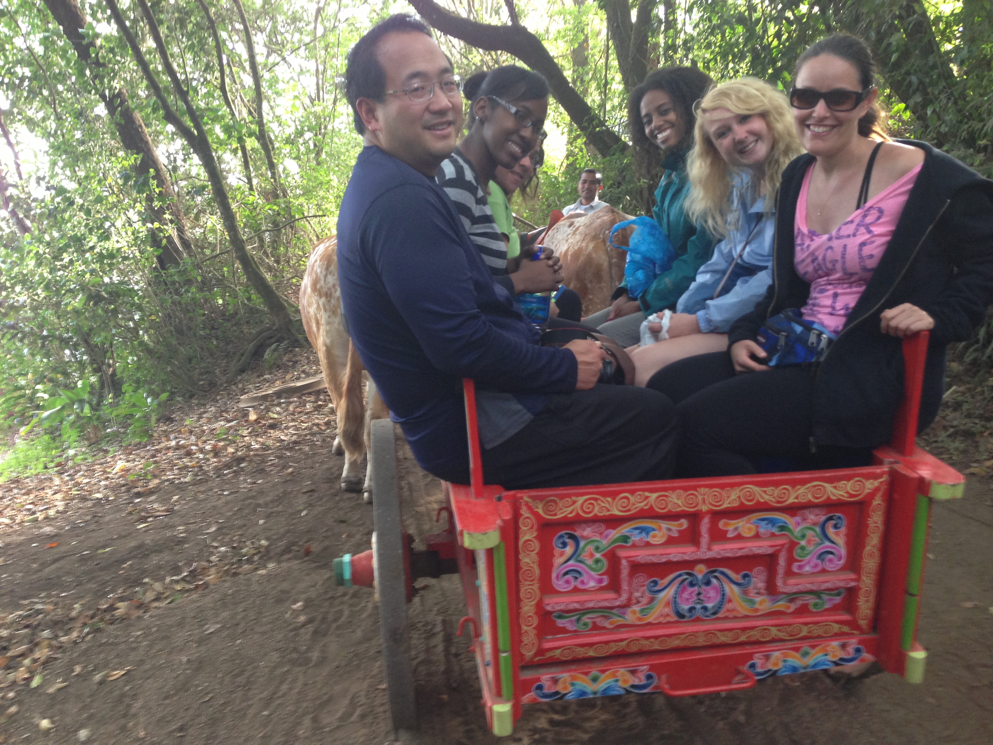 Our tour was made even more wonderful by the presence of four young children who were so spirited and inquisitive that they brought the liveliness out of the entire group. Our tour guide took us through the process of creating the coffee beans and the cocoa beans and let us taste it along each step of the way. I won’t lie, some of the uncooked/unprocessed beans were fairly good and Thecla and I definitely took a handful of one pile and munched on it along the tour route. We took an oxen drawn cart to a building where we mixed hot sugar into flavored candy and bagged it. The last thing our tour guide let us try was moonshine that they brew there, although it is it technically illegal. It certainly had a burning sensation, and I could not stop laughing at the children asking what it was. The tour ended with coffee and yummy snacks, and my body was thankful for such treats as the horseback riding from the day before had left me quite sore.