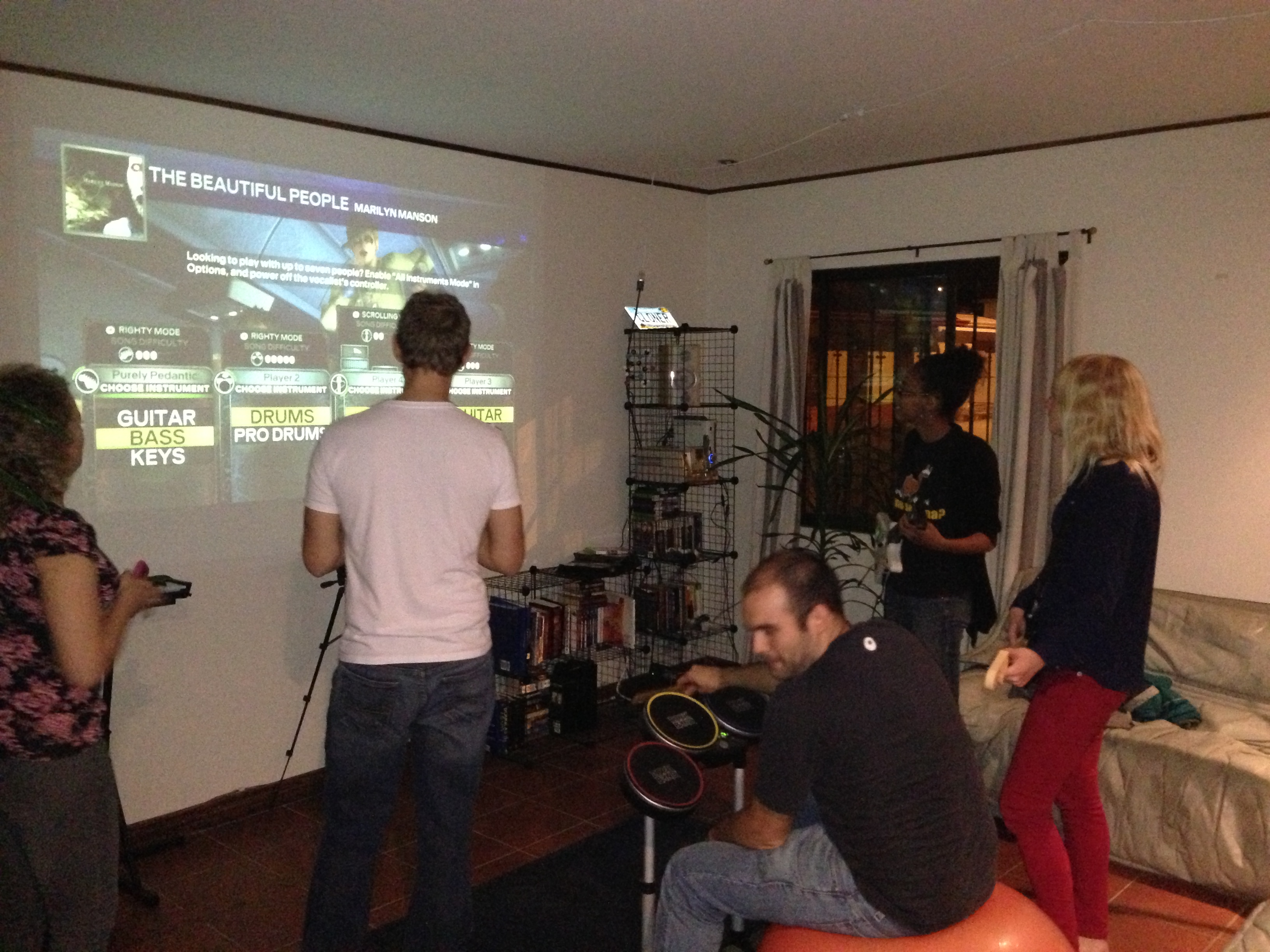 Our first night in Costa Rica greeted us with Dirty Girl Scouts and other drinks from our host of very many talents (including a PhD in human genetics) Lance. Lance introduced us to a joy we do not have the luxury of enjoying during the school weeks: video games. Namely, we focused on dancing our bottoms off with his kinect dance games and singing in our fictitious rock band. Ruthie and I even endured blood blisters from playing the drums. That’s dedication to your band.