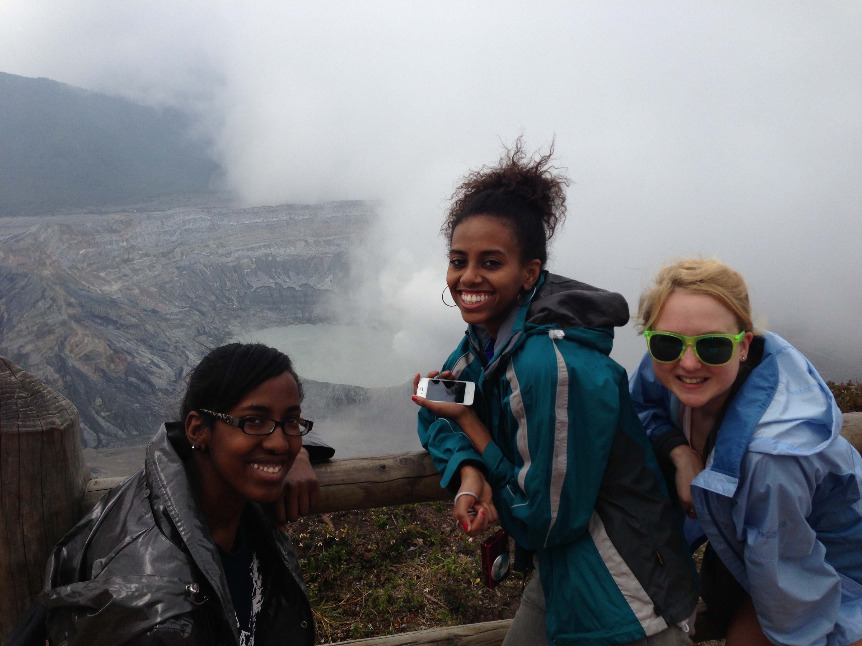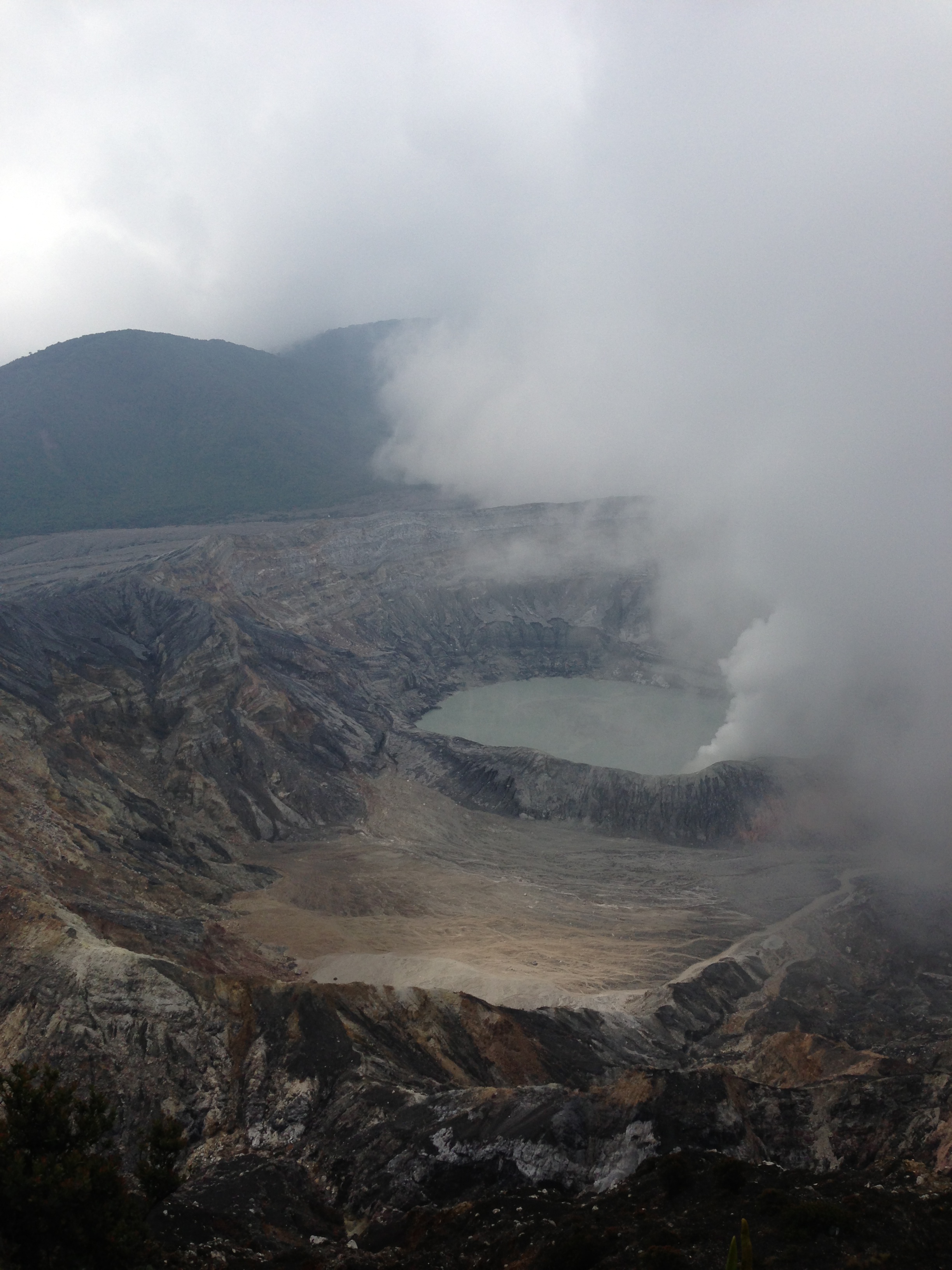 On the second day, we got up early to begin our journey to the Volcano Poas that was supposed to be an hour and a half away from the city. We did not realize that only ONE bus goes directly to the volcano a day, and so we got on a series of buses that eventually got us to the base of the volcano. At this point it was getting late, so we needed to make it up to the trails as fast as possible, and luckily we met a woman who helped us find a local ride up to the national park. From there it was a rather easy trek to the top of volcano, where we could look down into the crater lake. When we first got there, however, we could not see anything but thick white clouds. Needless to say we were disappointed after we had journeyed for hours to get there. A woman told us to wait for a few minutes, as the wind sometimes blew the clouds away enough to make for clear shots of the crater. So we waited, and sure enough, we were blessed with an incredible site that was well worth the journey.