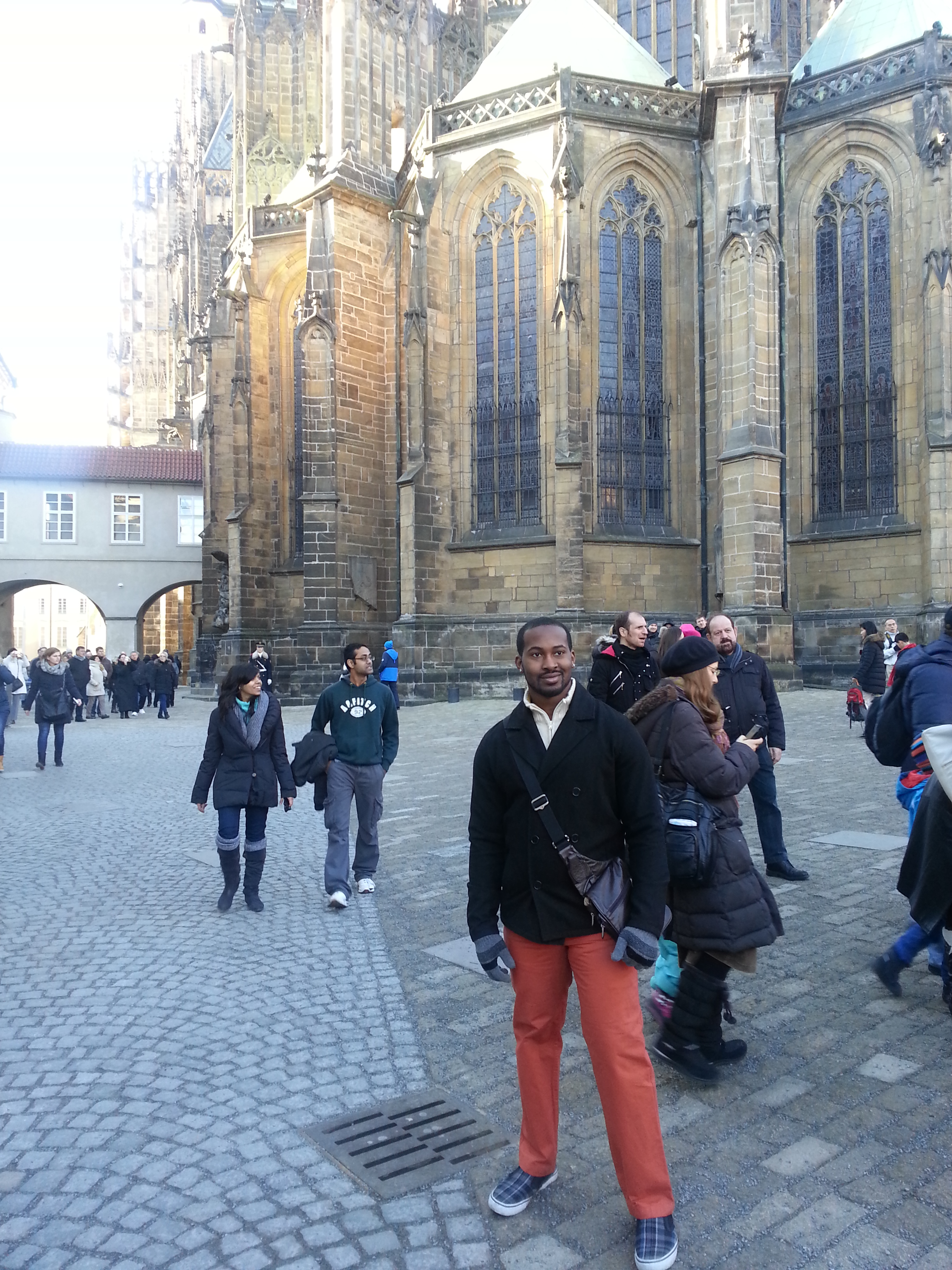 We decided to go on this locally guided tour called Prague in a Day to see some of the big sites. Our tour guide was a very eccentric older woman who spoke at many points throughout the day about how she wished Americans were more cosmopolitan and less conservative. It was amusing to say the least. Her ability to spout off facts without once ever referring to any paper or notes was astonishing. My favorite part of the day was when we went to Prague Castle. The bus ride up to where the castle is filled our eyes with remarkable shots of the city skyline and the river. We drank hot coffee as we toured around the castle grounds in order to keep warm on the chilly Czech day. That particular point in the tour ended with a traditional Czech lunch in a heated tent outside a restaurant, so we could still enjoy the views through the clear, plastic walls of the tent.