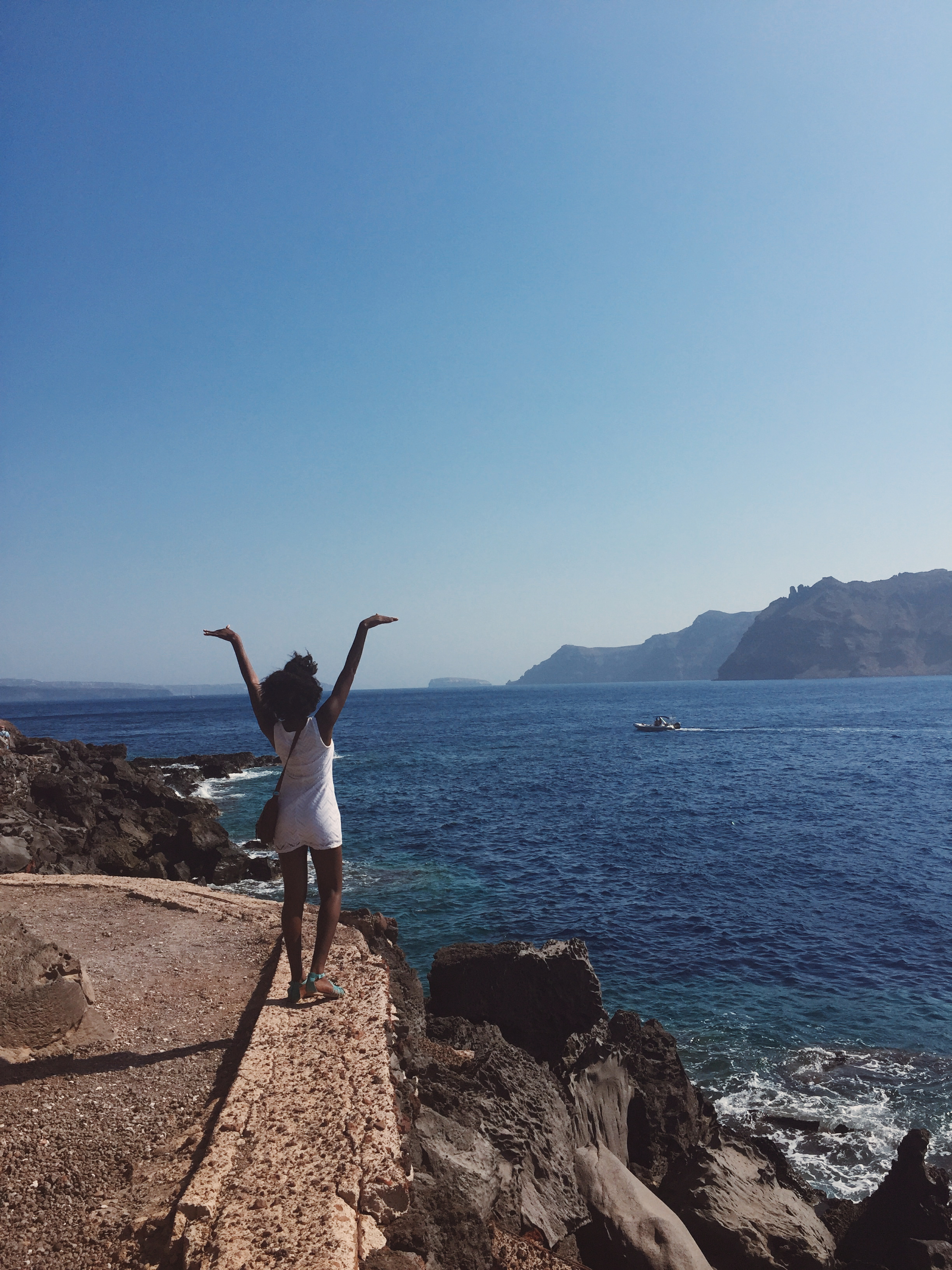 There’s a photo I love that I have seen on Facebook and Instagram a few times of hands filled with glitter and it says something along the lines of what happens when you touch a black girl because of #Blackgirlmagic. There was a moment as we were walking along the shoreline that I lifted my arms in the air for a photo, and as I did I looked around me at the vast beauty that was not just the beauty of Santorini, but also what I had exuded as my own #Blackgirlmagic during my time in Europe. My beauty, wit, style, and boldness of life that had been fully unleashed over the last years felt shockingly at the tips of my fingers. It’s always there. Sometimes it just needs a bit of reminding and revitalizing.